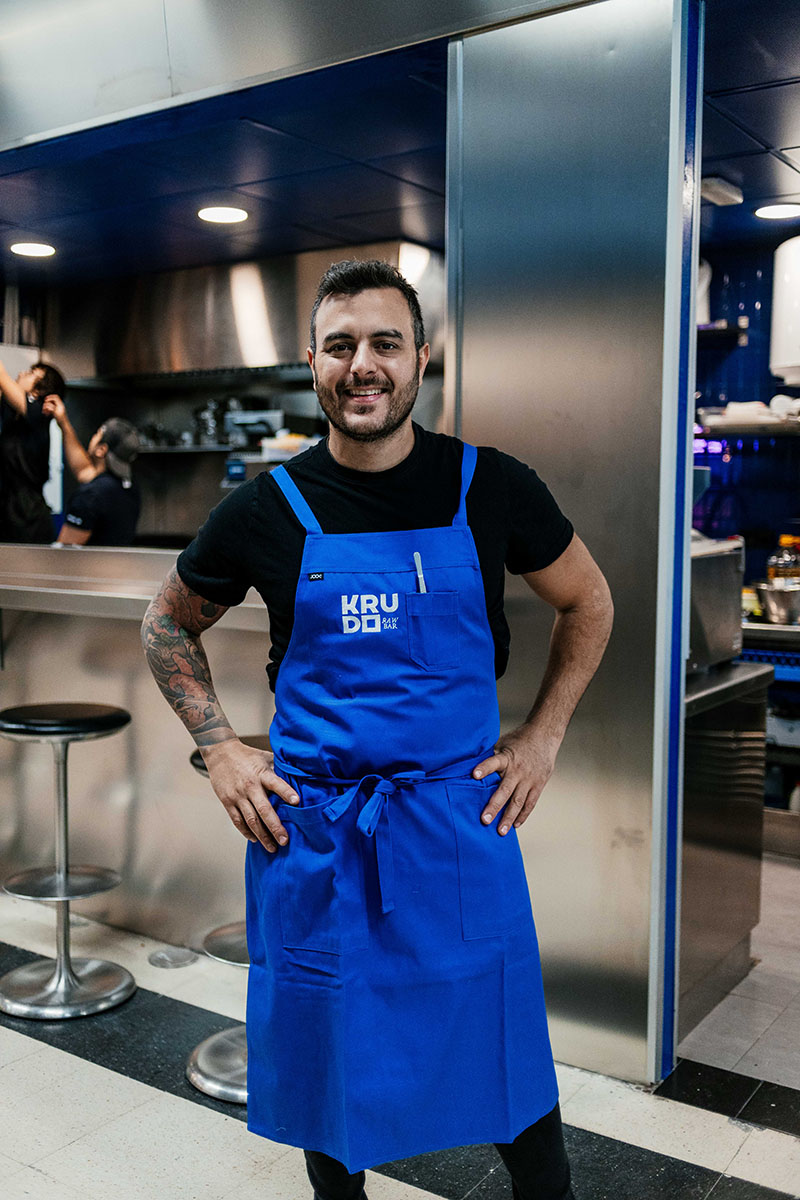 Krudo nos trae a la capital una gastronomía de fusión viajera donde los sabores de México, Perú, Venezuela o Thailandia se fusionan con los productos y los andares de la cocina Española. Rafael Bérgamo y Andrés Correa de Kuoco están detrás de este pequeño paraíso del ultrasabor. ¿Se puede sorprender ofreciendo hoy en día ceviches, tiraditos, saams, croquetas, tacos o cocina a la brasa? Sí, sin ninguna duda.
