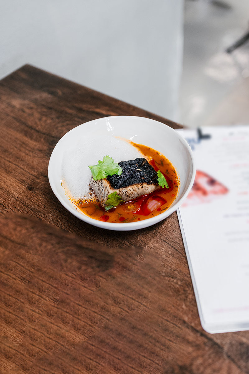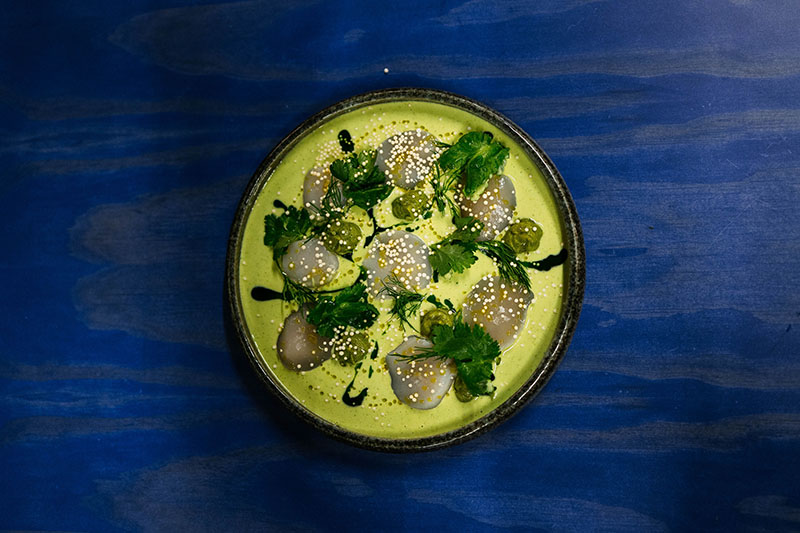 Rafael Bérgamo y Andrés Correa son los impulsores de este proyecto, dos venezolanos con un nombre consolidado en la escena gastronómica madrileña gracias a su primer restaurante, Kuoco, abierto en 2016. La cocina de Rafael es un reflejo de sus viajes por Asia y América Latina, donde descubrió sabores y técnicas que hoy reinterpretan con un enfoque creativo y contemporáneo. Su propuesta busca resaltar el producto local, convirtiéndolo en la base de cada plato que entra en la carta. Mientras tanto, Andrés es el alma de la sala, asegurando que cada detalle de la experiencia sea impecable y esté a la altura de la cocina.