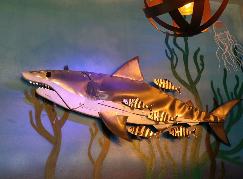Imagen superior: tiburón de reciclaje en el restaurante Kultura Kuisine