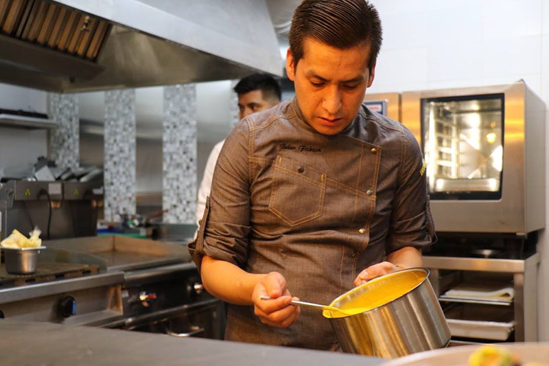 El chef Beker Favian en la cocina del restaurante Kultura Kuisine