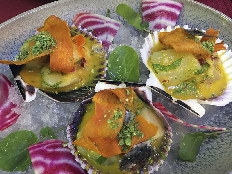 Imagen superior: vieiras acebichadas del restaurante Kultura Kuisine