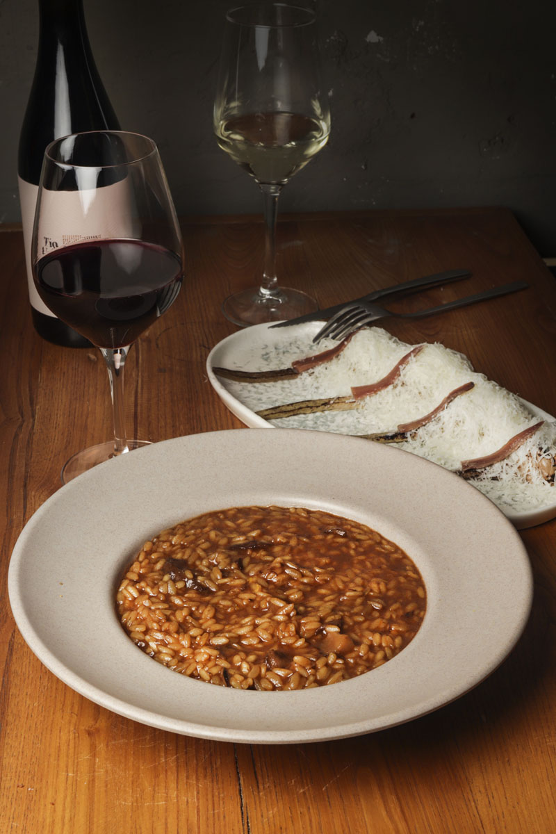 El ideólogo que está detrás de La Nobia es Juanma Ortega, que seguramente os suene más por su mítico restaurante en Lavapiés: Juan Raro, abierto en 2014. En este nuevo proyecto cuenta con Juan Rioja (no os asustéis porque ya no aparecerán más Juanes en el texto) que es un chef formado en Le Cordon Bleu Londres, que tras trabajar por Reino Unido, Francia, Tailandia o India codeándose con grandes chefs internacionales, llega para crear una nueva carta impregnada de experiencias vividas por el mundo.
