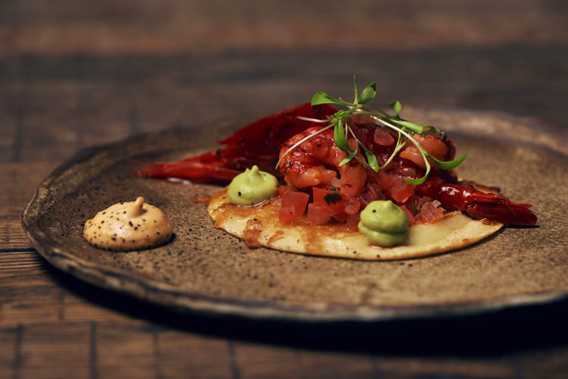 Imágenes superiores: 1) Taco Gobernador con camarón rojo, costra de queso oaxaqueño, pico de gallo y alioli de chipotle ahumado 2)Lubina salvaje a la talla con guacamole, frijoles y rúcula