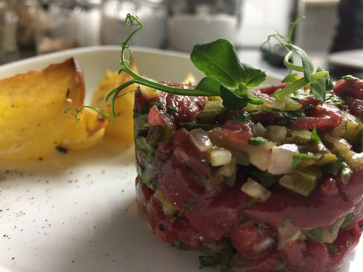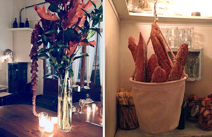 Traspasas una puerta de madera vestida con cortinas blancas y te sientas, entonces vienes tú y recomiendas personalmente. Efectivamente el menú nace de mi elección, desde mi paladar, de mi sentimiento personal y eso trato de transmitirlo en los platos, por eso los describo con sumo cuidado a nuestros clientes. La música y la luz también son elecciones personales, forman parte del ambiente, del cuidado personalizado que ofrecemos en esta casa.