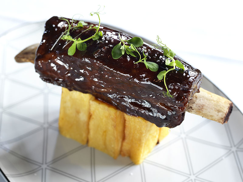 Comamos, que para eso hemos venido. Aclaración: El restaurante Lux garantiza servicio ininterrumpido de 12:30 a 00:30 en cocina, hasta las 02:30 si las copas se alargan. La carta es un desfile por las gastronomías de España, Italia, México y Asia. Lo que podría temerse como un quiero y no puedo se destapa con correctísimos pases de crudos japoneses (asesoría de Mario Payán, nada menos) preparados en el showcooking de la segunda planta, bogavante en papillote al estilo de Robuchon o, plato estrella, carabinero XXL, con permiso de la costilla de palo glaseada. El ejemplar de marisco se asa sobre hueso de caña con su tuétano y con un velo de panceta ibérica de guinda. Imprescindible acceder a que el camarero lo prepare para la correcta degustación (hasta escurrir el jugo de la cabeza) si no se quiere destrozar el producto.