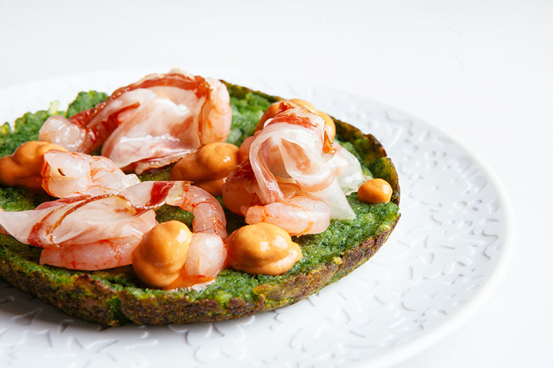 Imagen superior: trinxat de gambetas del restaurante Mediamanga