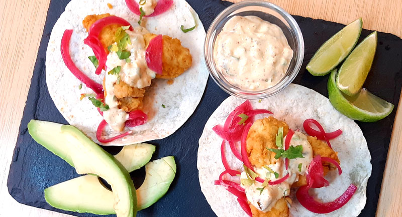 Imágenes superiores: 1/ Tacos de pescado estilo Ensenada rebozados en cerveza y con mahonesa de jalapeño 2/ Costillas al chipotle con tortillas para armar tus propios tacos 3/ Vista del restaurante