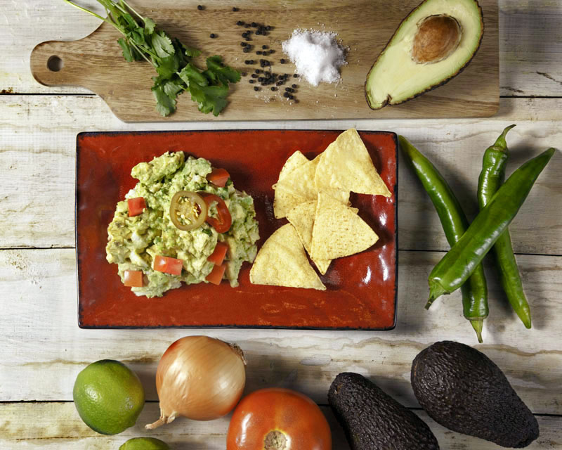 Imagen superior: El guacamole (aunque viene en bandeja de cartón)