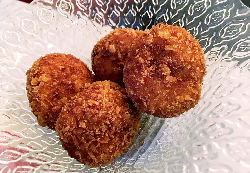 Muy apetecibles como petiscos los tomates marinados, rellenos de un tartar de aguacate sobre una cama de polvo de albahaca. Interesante el fideuá thai, con mejillones y gambas, sutilmente picante. Más de la lonja coruñesa: la merluza de pincho con crema de guisantes con jamón y menestra de verduras. Más de la granja gallega: costilla de porco celta a la barbacoa china, la carrillera de ternera estofada al vino tinto, noisette y setas encurtidas, y la abundante croca (parte de la cadera) de rubia gallega, acompañada de una duxelle de champiñones y patata gallega.