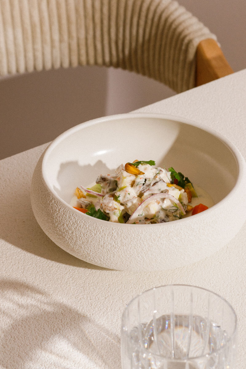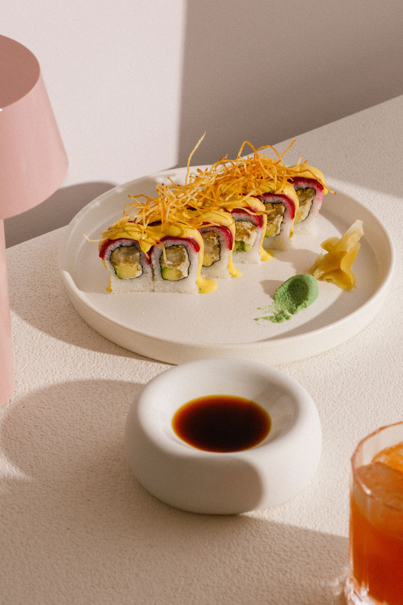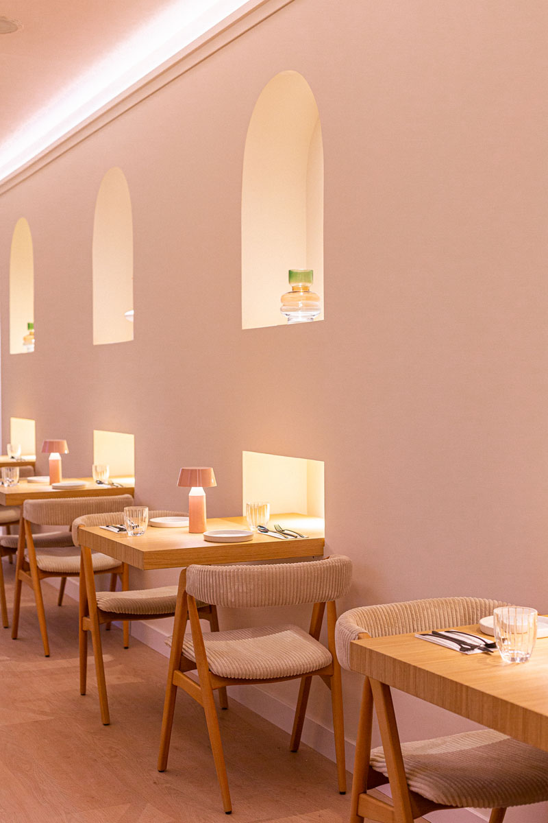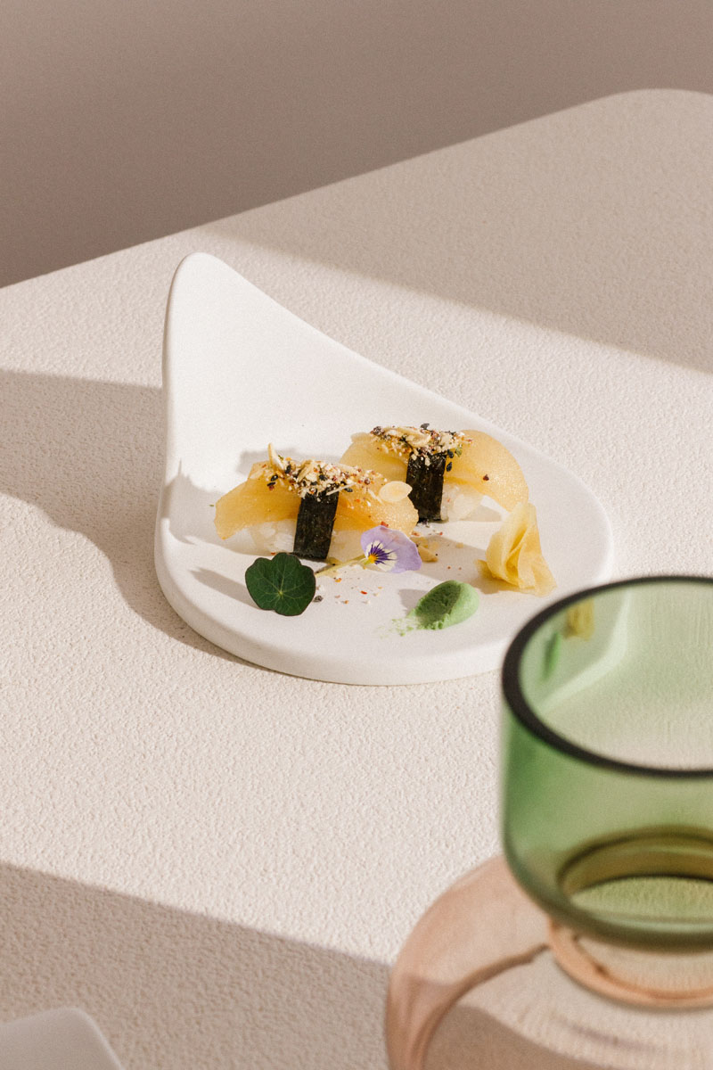 El nuevo Mudrá de Madrid está situado en la calle Recoletos 13, una calle en la que los negocios de restauración no paran de crecer. Lo que más nos gustó de este nuevo concepto gastronómico es que, aunque no seas vegetariano o vegano, los platos están tan bien elaborados que no echas en falta la proteína animal. El local tiene casi 300m repartidos en dos plantas; la de abajo pensada más para picoteo y la de arriba para comidas o cenas más formales. En su carta te vas a encontrar algunos ejemplos de platos muy depurados inspirados en la cocina peruana como el Tiradito de Alcachofas o el Ceviche de Setas, y otros inspirados en la cocina japonesa como es el Sushi Roll de Mango o el Nigiri de Pera. Pero en Mudrá no solo hay platos deliciosos y bonitos, su interiorismo, que lo firma Ailin Malimowcka, y el personal que lo atiende es otro de sus grandes encantos.