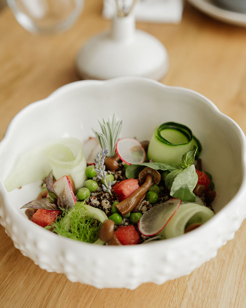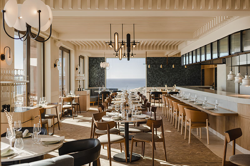 La esencia de este lugar no se limita solo a su oferta gastronómica. La colaboración entre el renombrado arquitecto portugués Luis Pedra Silva y el estudio de interiorismo español Astet ha dado vida a una propiedad agrícola rehabilitada y reconvertida. Los tonos terrosos del acantilado se fusionan con la modernidad y la autenticidad local, creando un ambiente relajado y sofisticado que funciona para todas las estaciones.