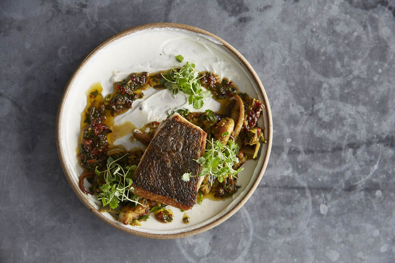 Imagen superior, uno de los platos de The Palomar, fotografía de Helen Cathcart