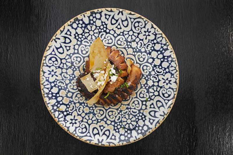 En este nuevo local trabajan un concepto de cocina contemporánea que aúna tradición y sabores del mundo, con lo más sobresaliente de cada cultura gastronómica. Así entre sus entrantes conviven las Patatas bravas junto al Tokyo Spicy y gran diversidad de croquetas como las de Berenjena e ldiazábal, las de Gamba ligeramente picante o las de Carrillera de Ternera y kikos.