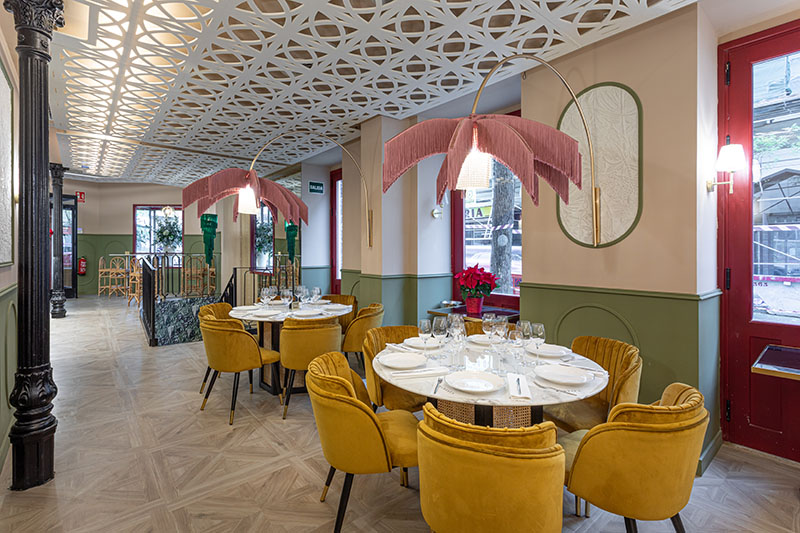 El restaurante Pantala se encuentra en el comienzo de la Calle Santa Engracia en local muy singular ya que fue una tienda de ultramarinos conocida como La Mantequería. El espacio tiene 2 zonas muy diferenciadas, por un lado, la planta calle, muy luminosa con una gran barra y al fondo varias mesas redondas con capacidad para 6 personas. Al fondo nos encontramos pequeñas mesas que se pueden unir para crear una más grande a medida. En la planta de abajo se encuentra otra sala con el techo abovedado con ladrillo visto. Un espacio estilo carbonera que duplica la capacidad de la planta superior.