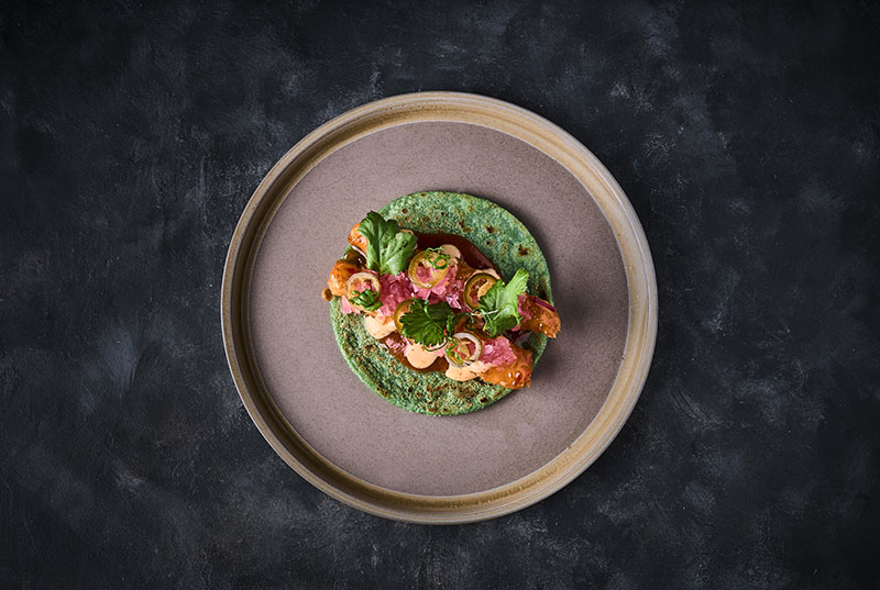 El proyecto está capitaneado por el chef Juan Suárez de Lezo, que ha diseñado un menú que explora la riqueza de la cocina asiática a través de cinco elaboraciones. En este recorrido culinario nos encontramos con un Taco fresco con tempura de langostino y encurtidos, acompañado de una salsa agripicante; así como unos Dumplings de ternera y setas trompeta de la muerte. También se podrá degustar un Wok de pollo y carabineros, combinado con especias y verduras, y Bacalao con verduras chinas y salsa de jengibre. Para cerrar, el postre: un Crujiente de chocolate blanco, yogur y espuma de nitro de lima.