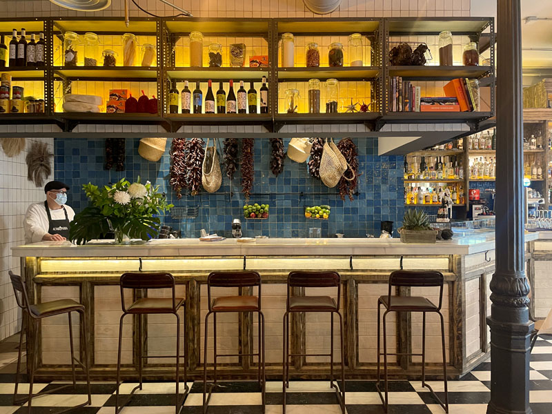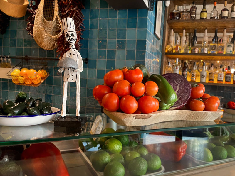 Hubiera sido muy triste el no probar algunos de sus cócteles. Interesante y completa la carta de sus 21 cócteles que el barman Benjamín ‘Benjo’ Bikoksedi ejecuta de forma extraordinaria. Encontramos curiosas creaciones como el Nopalmes, que es una mezcla de nopal, néctar de agave, lima, licor de melón y base alcohólica de mezcal. También encuentras la Margarita clásica o las Margarita que exploran más allá de la tradición: las de sabores a elegir entre tamarindo, guayaba, fresa o maracuyá.