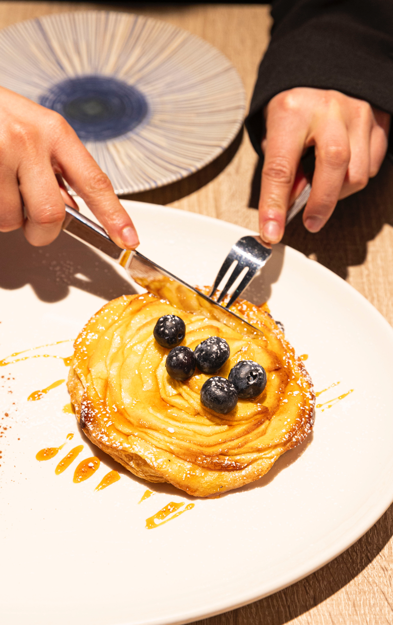 Imágenes superiores: Alcachofas confitadas y Tarta de manzana