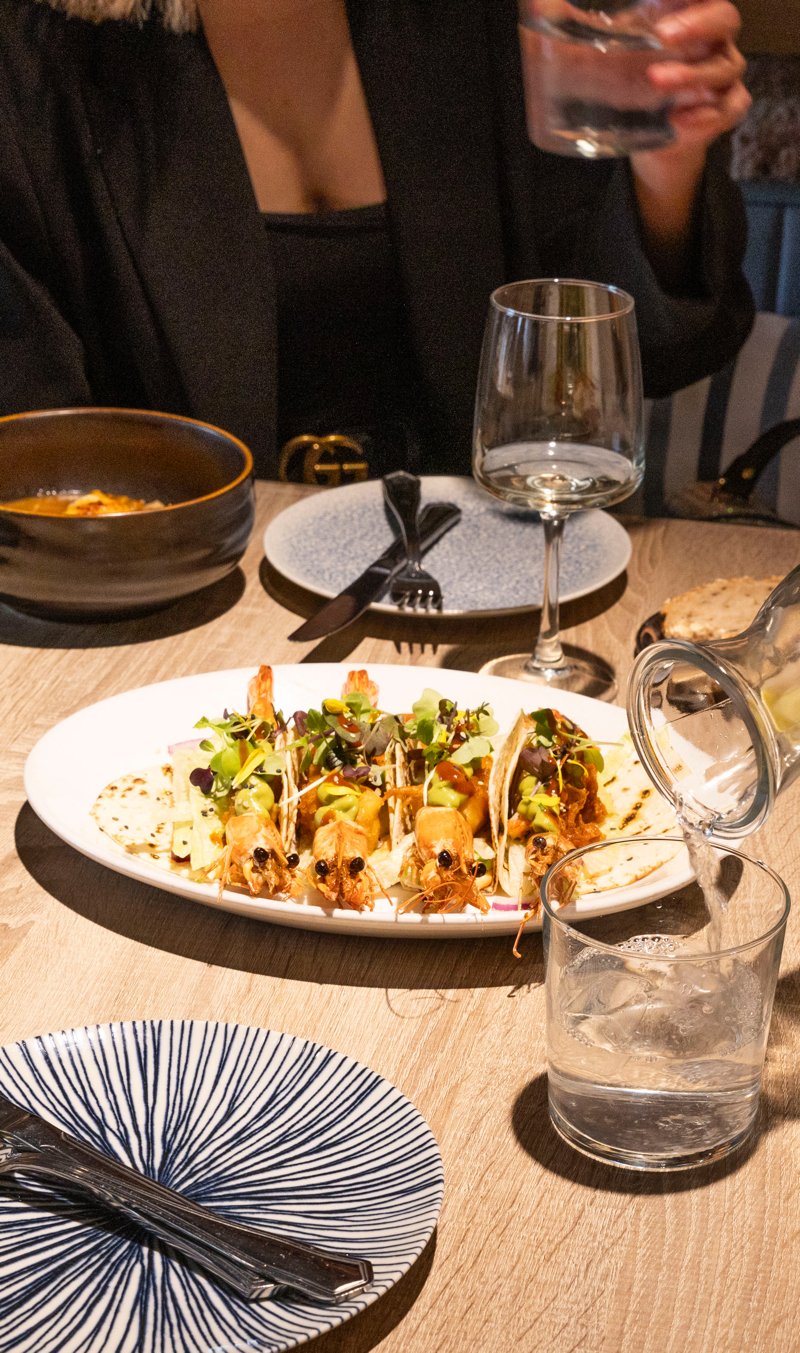 Finalmente, entre sus opciones para compartir sobresalen los Tacos Baja, con langostinos rebozados con tomate, cebolla, col, perejil y gotas de salsa de chiles (19€); las croquetas Mix de jamón, langostino y cochinita (12€); y las Empanadas de solomillo picado con queso cabrales y vasito de salsa de chiles (9€).