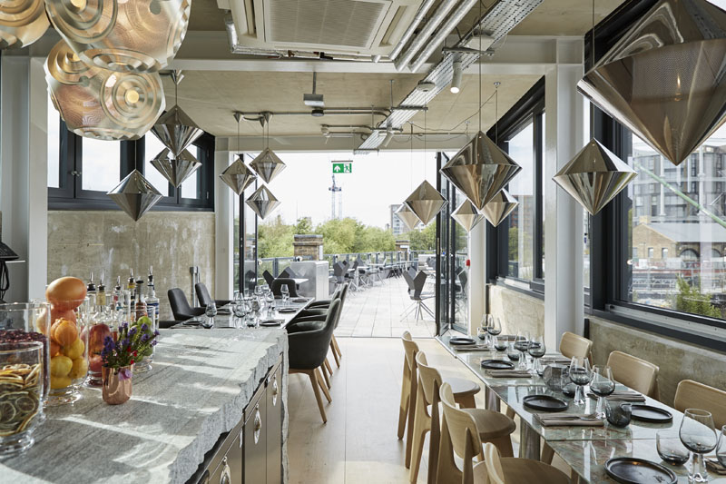 En la zona de King Cross en Londres se está produciendo una transformación inmobiliaria espectacular. Era una de las pocas zona de la capital que aún había terrenos sin edificar. Desde hace unos años las grúas no han parado eso se ha traducido en muchísimos metros cuadrados que ocupar. En la zona ya se han instalado empresas como Google, LVMH o la famosa escuela de diseño Central St. Martins. El diseñador Tom Dixon también se ha trasladado a esta zona, concretamente al complejo Coal Drop Yard. Allí ha montado su estudio-oficina, una gran tienda y un restaurante. Son más 1.600 m2 para lo que Tom Dixon ha llamado The Coal Office.
