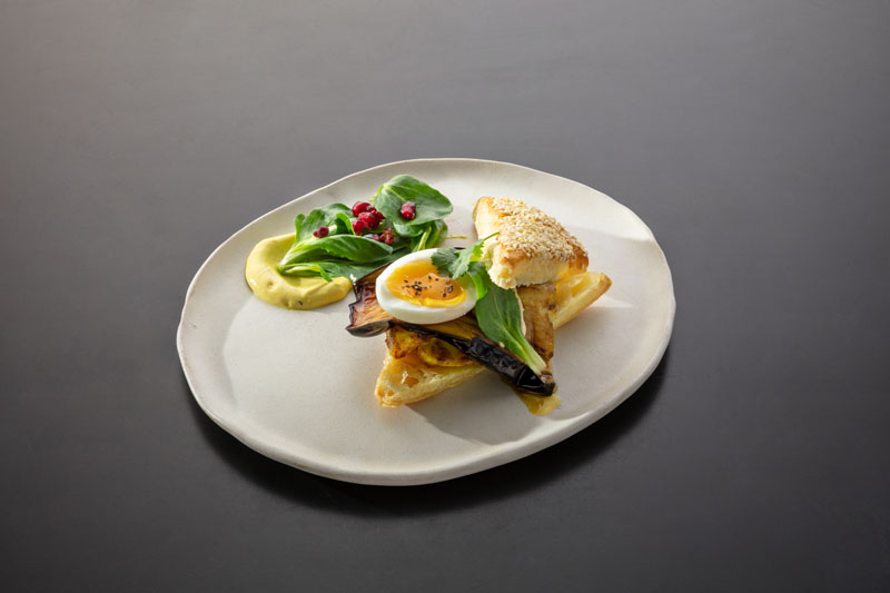 Berenjena Josperizada con tahini verde y pistacho. 9£