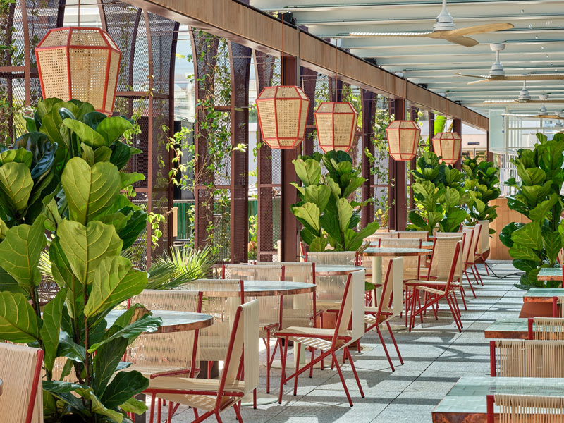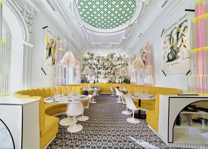 El diseño del establecimiento es impresionante, sin paliativos. Señorial y majestuoso Pepe Leal se luce en la decoración de cada uno de los salones. Todos rebosantes de exotismo, nos permite contemplar desde la más ortodoxa y clásica arquitectura, como nos sitúa a un impresionante laboratorio botánico que además goza de una maravillosa luz natural. Todos y cada uno, impregnado de elegancia y estilo.
