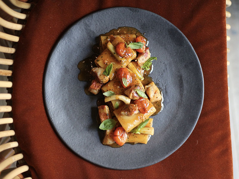 Entre sus opciones de pasta destacan el Paccheri con salmonetes, tomatitos y ajetes (20€) o el Pappardelle al ragú de rabo de vaca (20€).