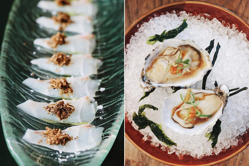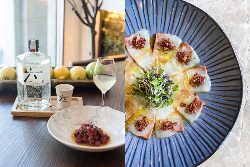 Imagen superior: menú Kon-Roku y Usuzukuri de pez limón con jamón ibérico