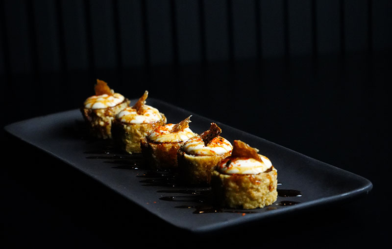 En la sección de makis, los precios oscilan entre los 12,50 € y los 14 €, según el relleno y la cobertura. Uno de los más llamativos, el Zoku (14 €), combina cangrejo, salmón y langostino apanado envuelto en quinua crocante, con un toque de trufa y láminas de oro encima.