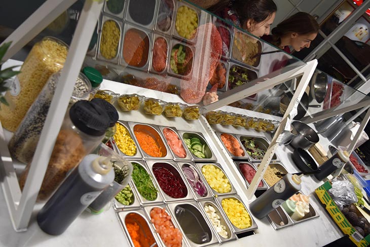 Mi plato era una base de arroz cocinado al estilo de sushi (con ese condimento japonés de nombre mirin)… combinado con quinoa. La parte proteica la aportada un atún fresco marinado con aceite de soja y cebollinos… y luego un mix de aguacate, mango, algas… y alguna cosa maravillosa más. Y todo aderezado con una salsa sabrosa de fórmula secreta, que según los expertos es lo que marca la diferencia frente a otros restaurantes de esta especialidad. El precio medio podría rondar los 14 euros.
