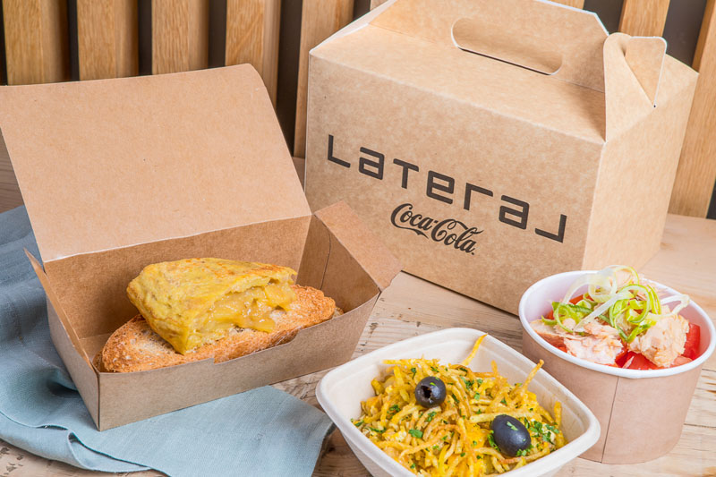 Tras el cierre temporal del 13 de marzo, Restaurantes Lateral reabre su servicio de comida a domicilio con algunas novedades, como son sus bandejas para compartir, que incluyen una selección de pinchos: Bandeja de pinchos estrella (1/2 de tortilla, solomillo con foie, solomillo con brie fundido, solomillo con cebolla confitada, dos croquetas de jamón y dos de boletus), Bandeja de pinchos de solomillo (dos de solomillo con foie, dos con brie fundido y dos con cebolla confitada) y Degustación de pinchos (Pincho Lateral, solomillo con cebolla confitada, Matrimonio, rollito de salmón, croqueta de jamón y croqueta de boletus). No falta opción de aperitivo, combos para teletrabajo y de postre su torrija de pan brioche a la plancha.