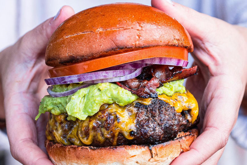 Una hamburguesa, por fin. Bueno, si tenéis antojo de una Bronx con aguacate, beicon ahumado, tomate, cebolla roja y pan brioche, no lo podéis tener más fácil.