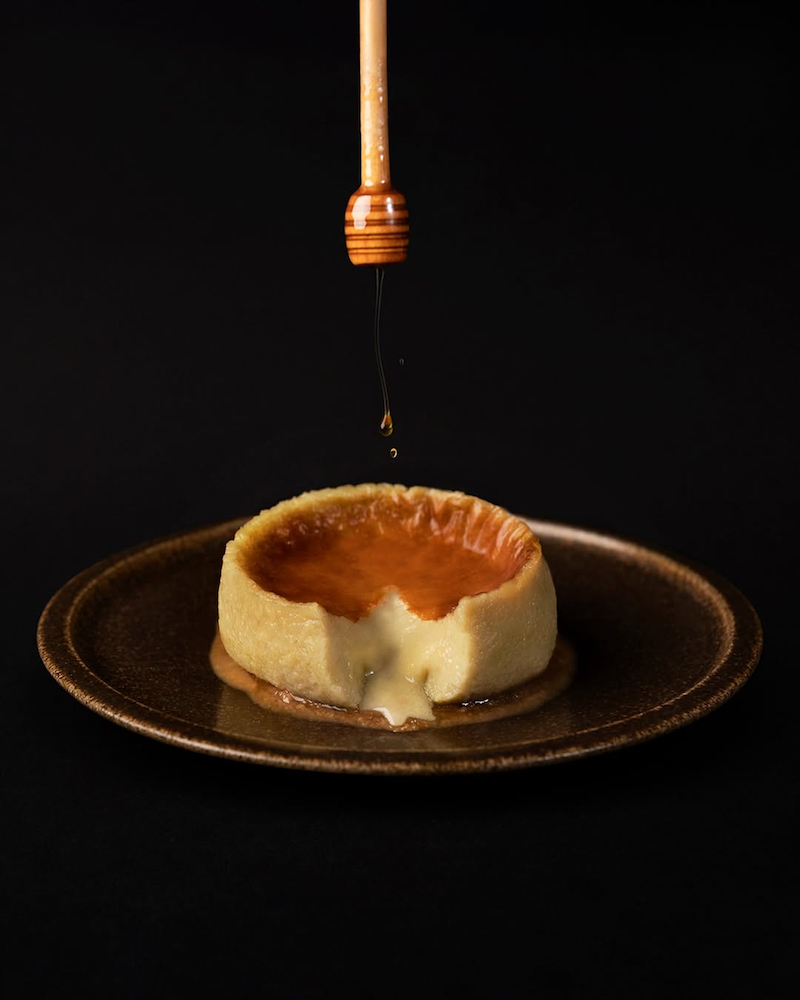 Cebolla de Figueres, queso, brioche, anguila ahumada, caviar de trucha de río