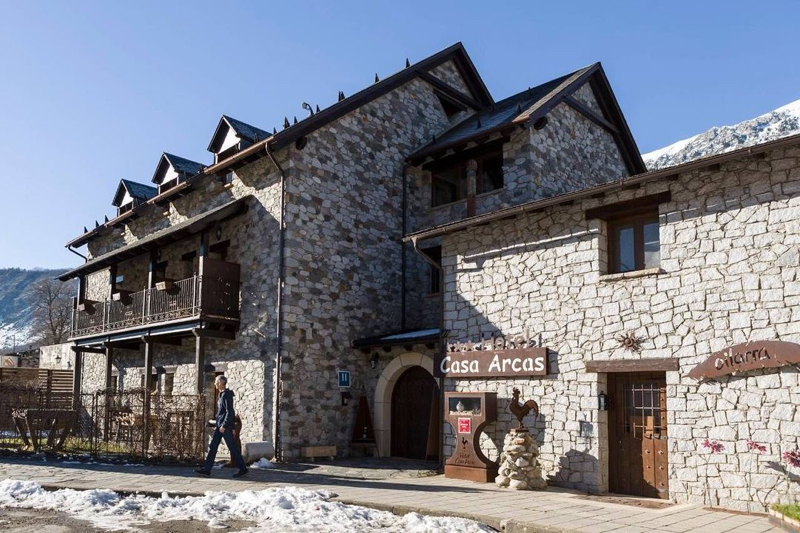 En un diminuto pueblo de 37 habitantes en la comarca del Alto Gállego, provincia de Huesca, se encuentra La Era de los Nogales. Rodeado de imponentes edificios de piedra, su estructura en forma de carpa acristalada ofrece unas espectaculares vistas a las montañas del Pirineo Aragonés.
