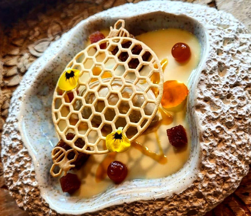 Sorbete de ostra, de Voramar, uno de los restaurantes Michelin muy asequibles en la España rural