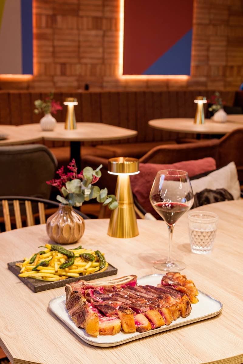 Imágenes superiores: 1) Steak tartar de ternera madurada acabada con foie. 2) Chuletón madurado con patatas y pimientos del padrón