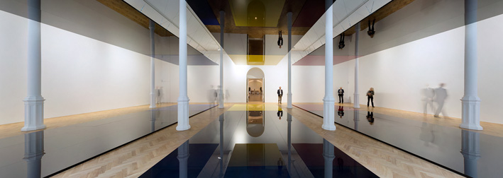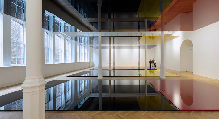 Tras representar a los más importantes artistas del siglo XX Y XXI, la galería Pace situada en la capital británica ha decidido realizar una nueva exposición del creador del movimiento Light and Space iniciado en los sesenta. Mientras el mundo se hacía eco de la nueva ola de artistas pop, en el sur de California indagaban en una nueva estética revolucionaria de la que Robert Irwin se consagraría como su principal pionero. Irwin partía de diferentes investigaciones filosóficas sobre la naturaleza del ser humano y los avances en el campo de la psicología, y lo aplicó a la abstracción iniciada por artistas como Jackson Pollock y Barnett Newman, para crear una obra insólita que se podrá observar ahora hasta el próximo 17 de agosto en la galería Pace (6 Burlington Gardens, Londres, W1S 3ET). La exposición cuenta con dos instalaciones bajo el nombre de “Who’s Afraid Of Red, Yellow and Blue” situada en la planta baja de la galería y “Picadilly” en la primera planta, proporcionando una combinación de pintura tradicional y escultura diseñada para manipular la luz ante el espectador. La primera instalación constituye una continuación de las ideas exploradas en el Museo de Arte Contemporáneo de San Diego (2007-2008) en la que tres paneles de aluminio colorado a modo de espejo, se cernían sobre el techo y el suelo para suspender la figura del asistente en el aire y ofrecerle una experiencia única.