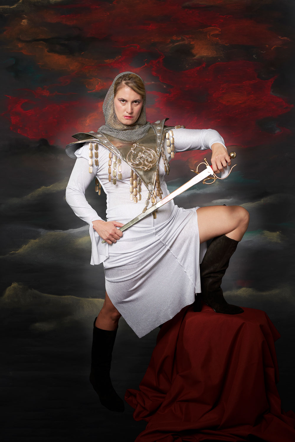 Rocío Saiz con capucha SAMSOE, armadura ALE FERRI, vestido MAROUF y botas SANDRO