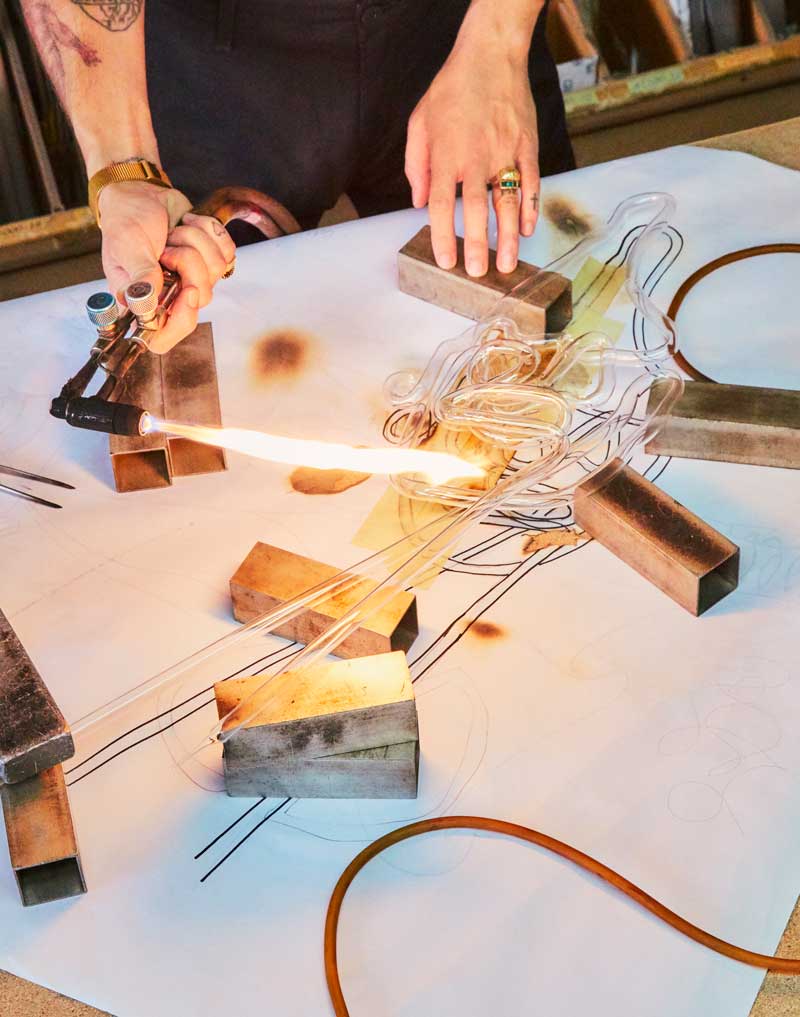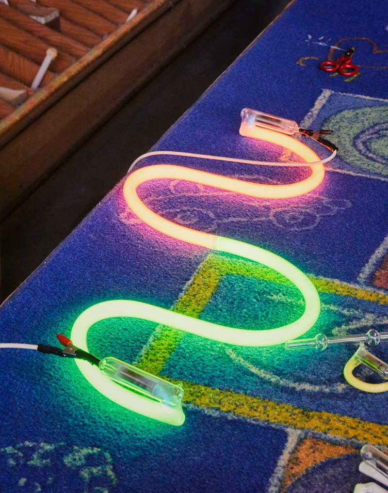 Escultura de Neón del artista Roi Porto en proceso de creación