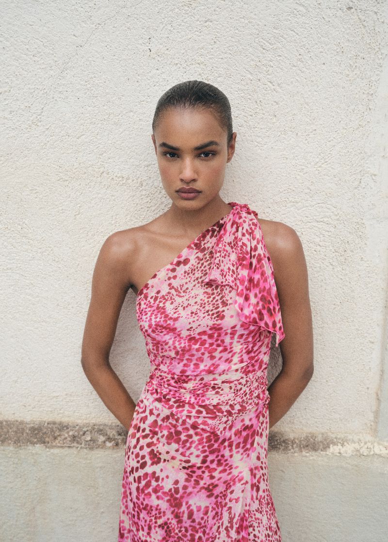 Mango apuesta por el rosa en sus nuevas prendas, incluyéndolo en diseños con estampado de leopardo y vestidos asimétricos.