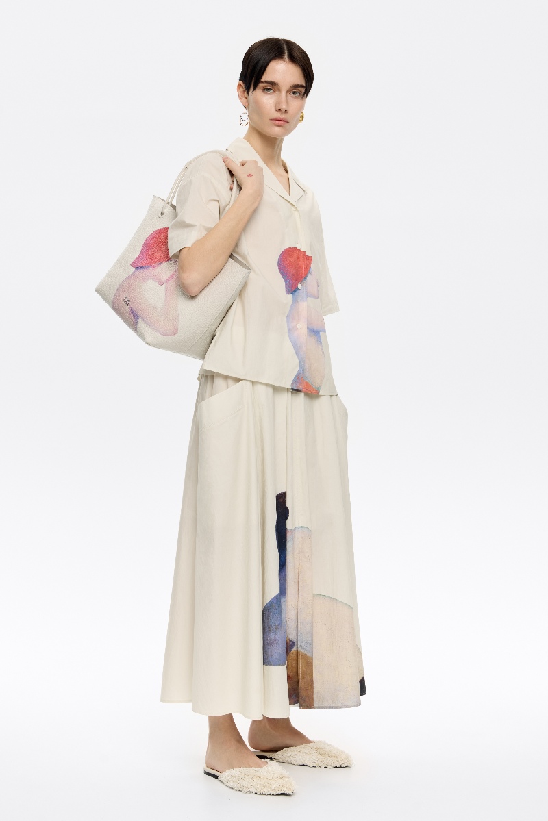 Oye, llevar esta ropa como una obra de arte es muy fácil, pero no pienses que se trata de esos diseños típicos que ves en tiendas de souvenirs. Aquí estamos hablando de moda de verdad, y de moda de Bimba y Lola. Porque toda esa energía y atrevimiento que caracteriza a la marca se refleja en cada una de las prendas. Desde camisas y vestidos hasta bolsos e incluso una toalla con estampado. Un diseño que aporta un dinamismo inesperado al carácter estático de la obra original, celebrando la ligereza y el impacto de los pequeños detalles. ¿Nuestros favoritos? Claramente, el conjunto de camisa recta y falda con vuelo.