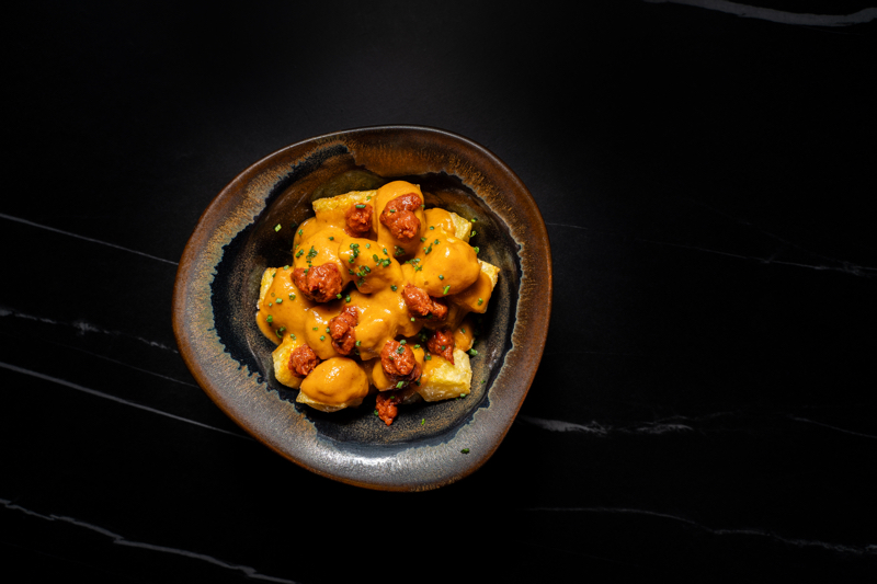 Imágenes superiores: La ensaladilla de Finca Bandida y las bravas de Mena.