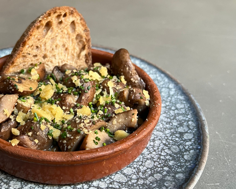 En Dolce & Vegana, nos espera un Sartù napolitano, un timbal de arroz relleno de albóndigas veganas, “queso” y guisantes. Si prefieres algo más terrenal, las setas al ajillo con “parmesano” de DV Invernadero son para ti.
