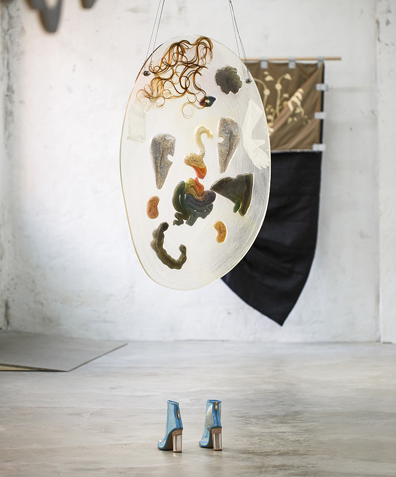 Saelia Aparicio (1982) terminó un máster en escultura en The Royal College of Art en 2015. Su trabajo multidisciplinar habita en las ideas de lo orgánico, estableciendo analogías entre los mecanismos sociales y corporales. El cuerpo se convierte en una fuente maleable de asombro y horror para la artista. Su práctica abarca desde grandes murales de pared a esculturas en los que a menudo son protagonistas los “objet trouvés” y el cristal soplado. El humor, una estética inspirada en los cómics y la animación albergan la preocupación del impacto sobre el cuerpo humano de la vida cotidiana, el medio ambiente, las enfermedades y el paso del tiempo. En 2019, Saelia Aparicio ganó el premio Generaciones, uno de los más prestigiosos galardones que se otorgan en Europa a jóvenes artistas. En 2019 también, recibió la comisión de The Serpentine Gallery de realizar la película “Green Shoots” para un simposio dentro de su proyecto de investigación sobre ecología titulado “The Shape of a circle in the mind of the fish with plants” (La forma de un círculo en la mente de un pez con plantas).