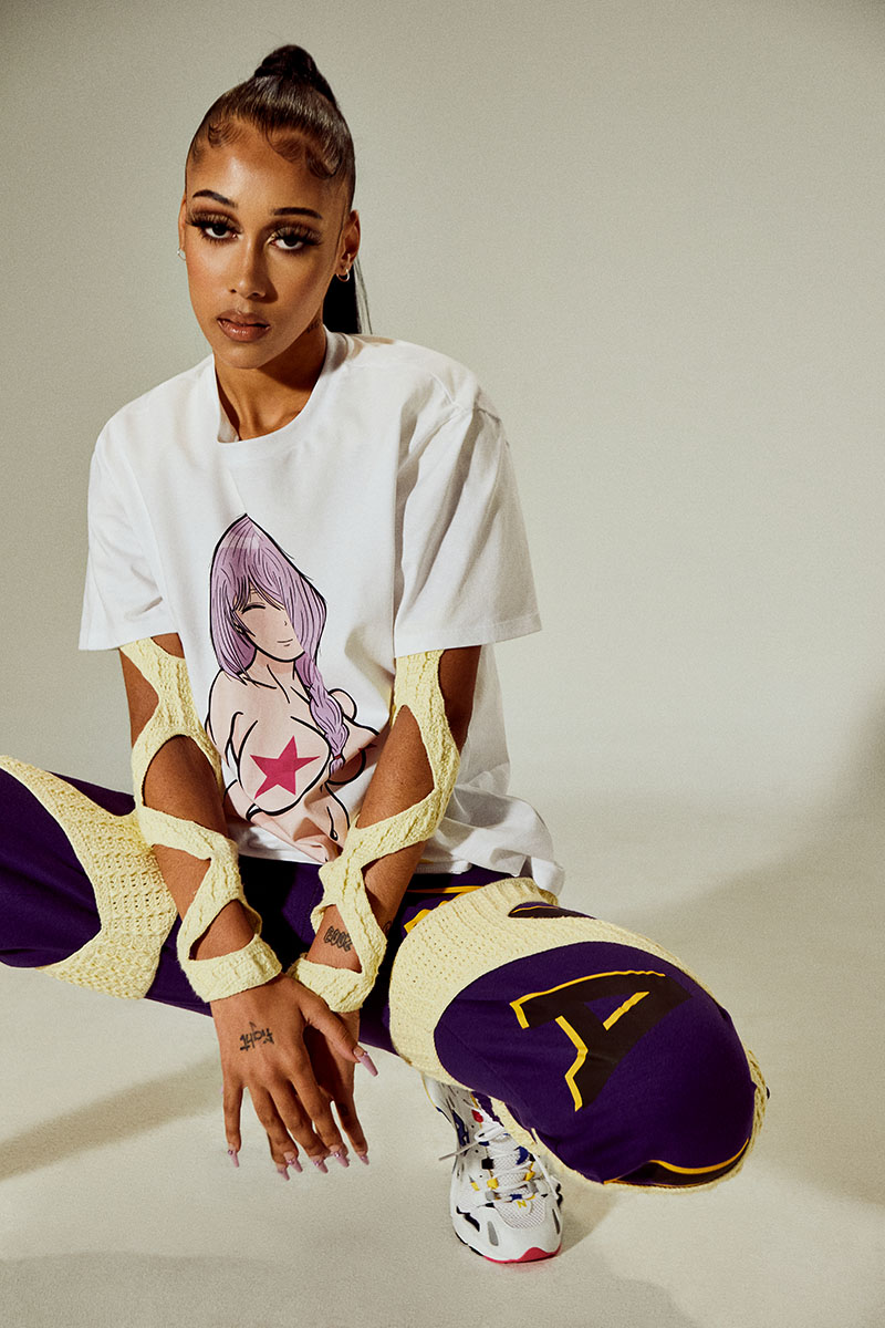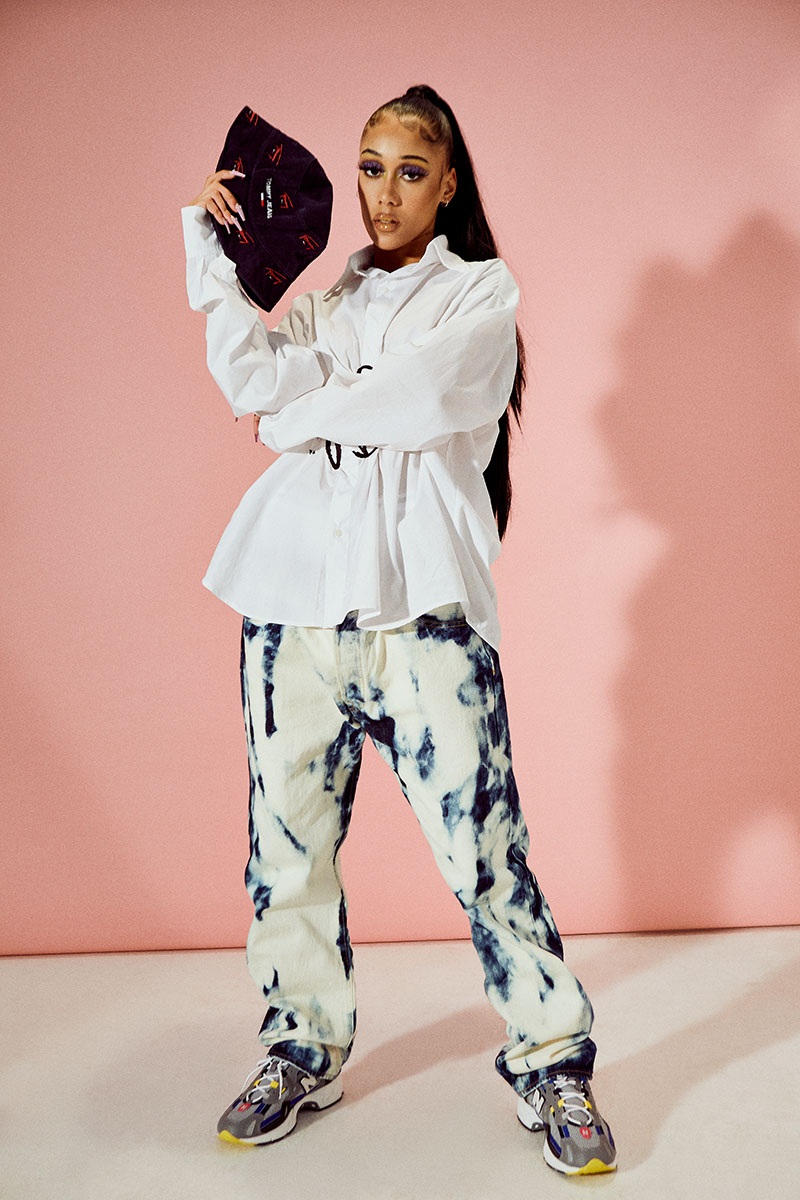 Foto Arriba: Safu lleva chaqueta de Vans + Top de Coconutscankill + Collar de Dolce & Gabanna + Pantalón de Versace + Calcetines de Tommy Hilfiger + Zapatillas de Skechers.