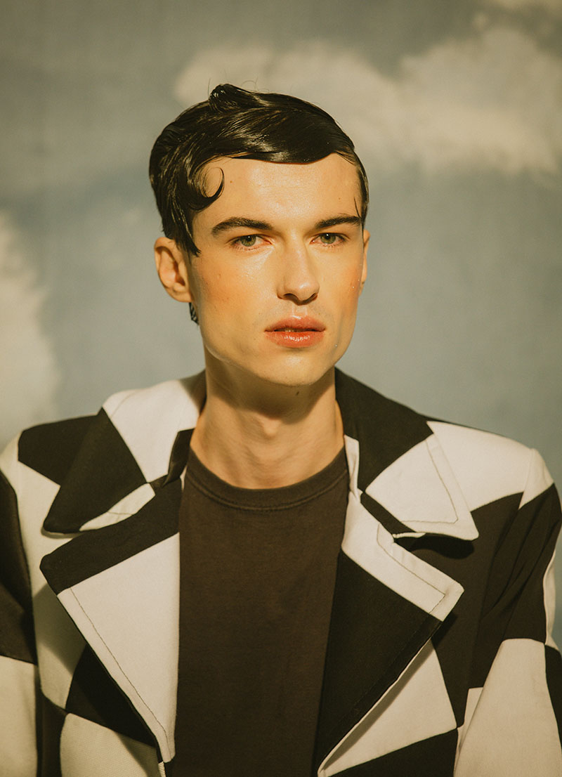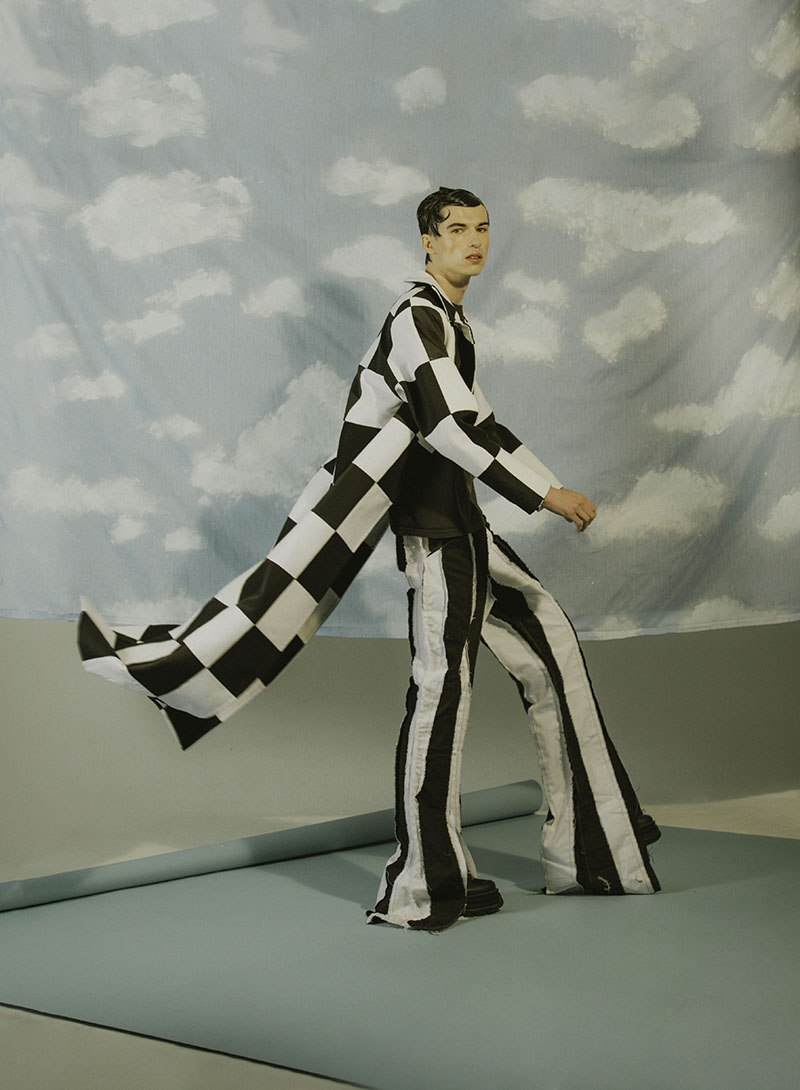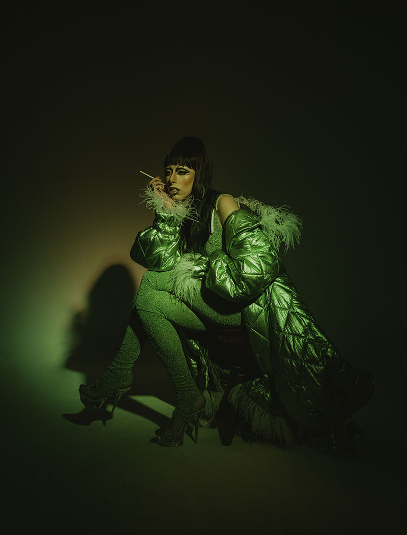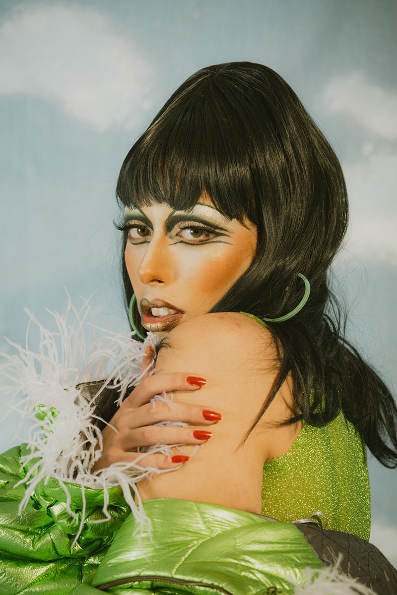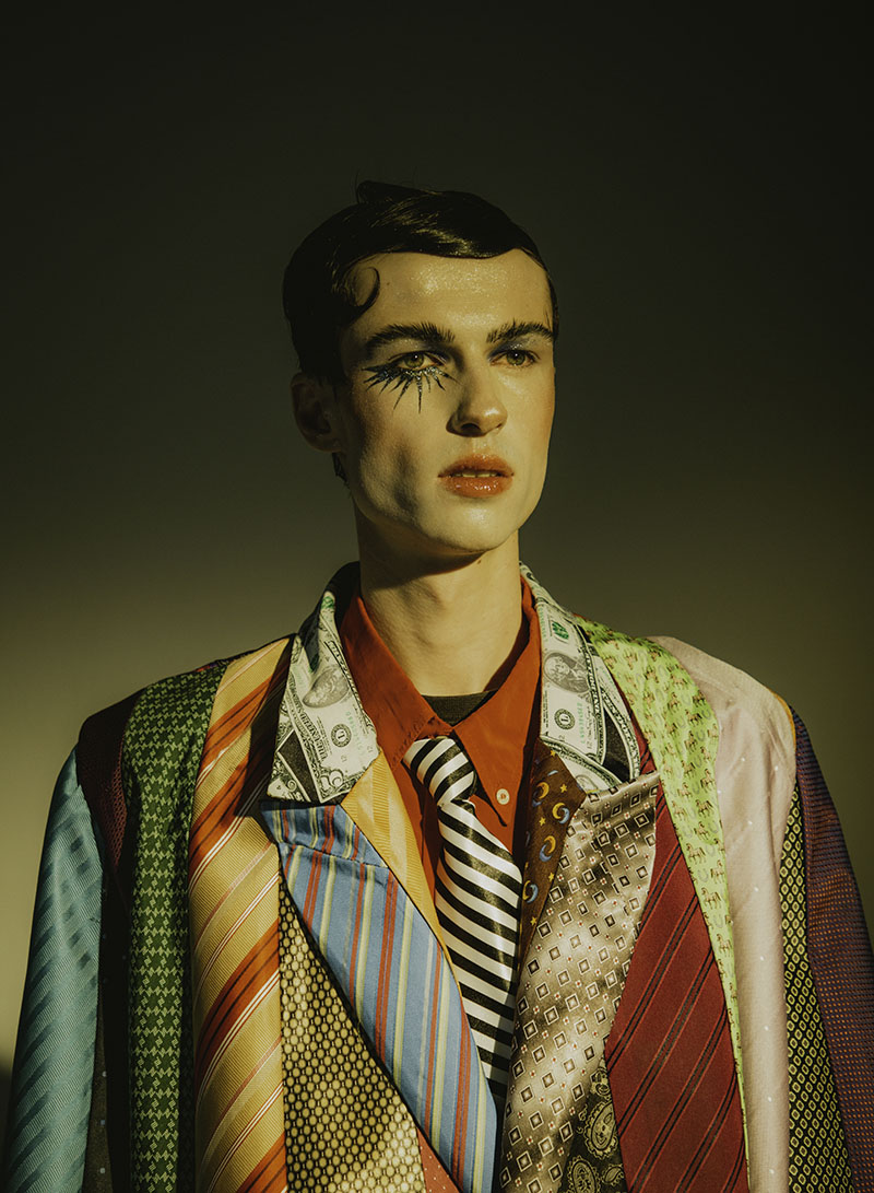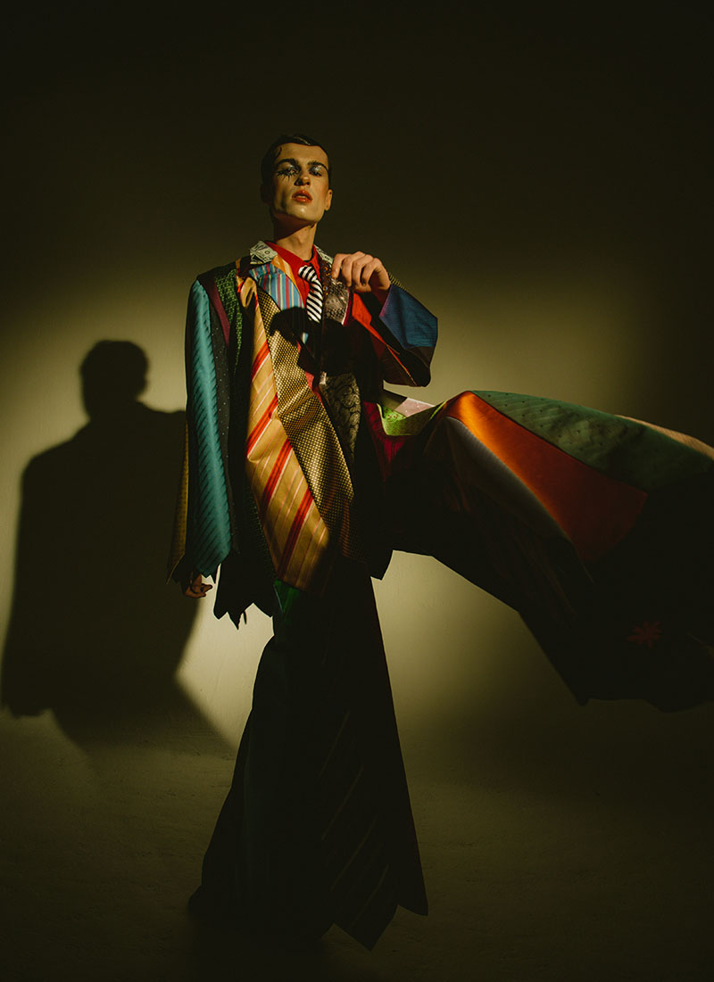 ¿Por qué decidisteis dividir el proyecto en Booktrailers y Shooting? ¿Qué transmite cada una de las partes del proyecto? Andrea Egido (dirección muah) y Fernando Rufete (dirección de producción) tienen la culpa de que el proyecto haya terminado siendo lo que es hoy. La idea de hacer el booktrailer por un lado y por otra el editorial surgió cuando nos dimos cuenta de que la historia que teníamos entre manos en realidad no era una historia, sino dos. En el booktrailer se ponen de manifiesto las distintas etapas que componen el proceso de aceptación de un individuo como persona cuir. La historia narra como Chicomarica ha estado marcado por distintas “armas” desde su nacimiento (un pintalabios, unos tacones, un poema…) y como estas han influido en su desarrollo como persona disidente, explorando conceptos como la negación de la identidad, la autodestrucción o el género. En el editorial contamos la segunda parte de esta historia: el booktrailer termina con Chicomarica (interpretado por Nicolás Martínez) habiendo culminado el proceso de metamorfosis, ya fuera de la crisálida, y en el editorial lo que hacemos es visibilizar el resultado de este proceso.