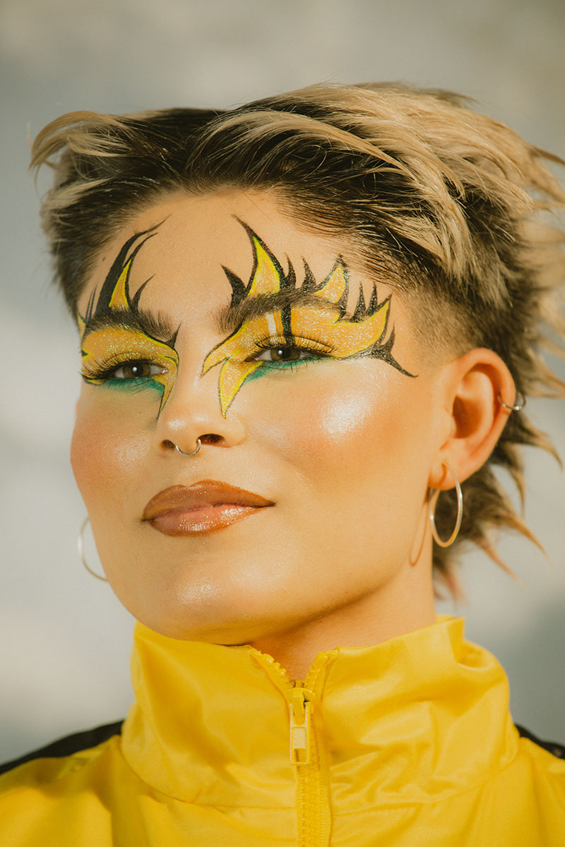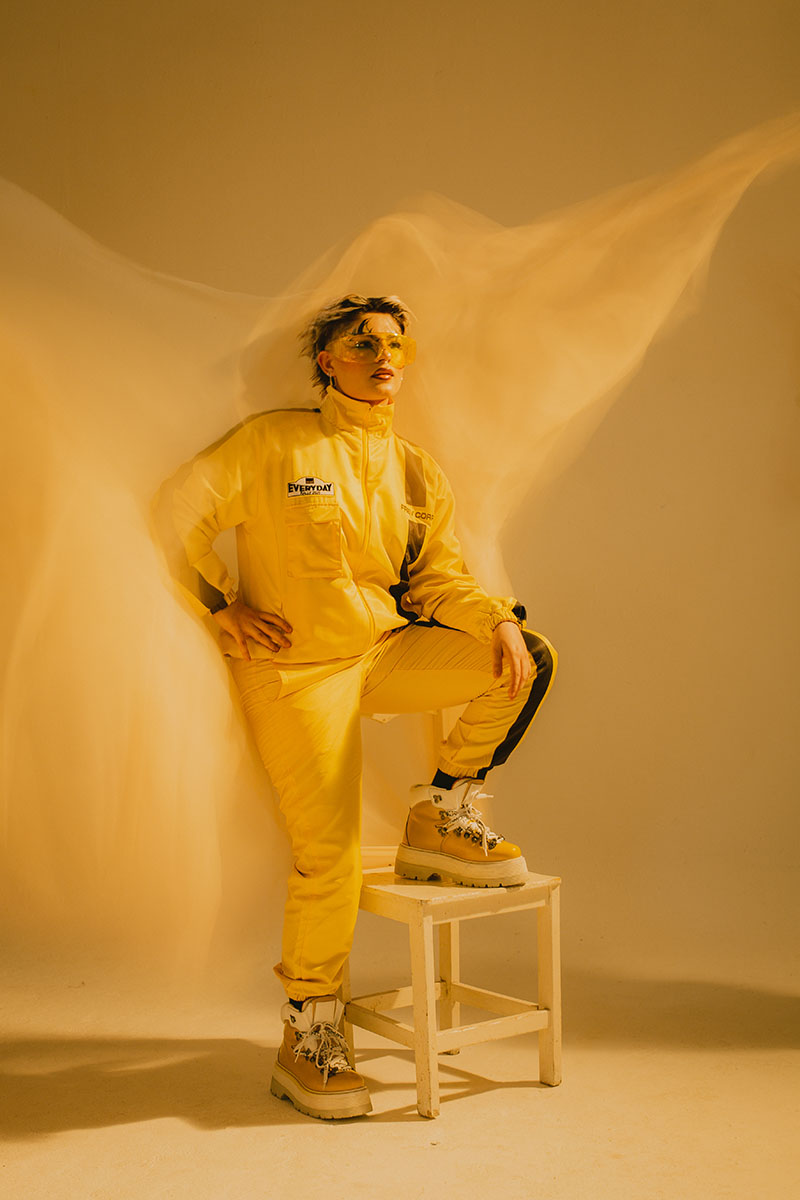 ¿De qué forma habéis materializado el concepto del poemario a través de este editorial de moda? La premisa de la que partimos es que el poemario está dividido en los 7 colores de la bandera LGTBIQ+, cada uno de ellos representando un sentimiento. En el booktrailer se asocia cada uno de estos sentimientos/colores a un “arma”. Para el editorial decidimos que llevaríamos este concepto un paso más allá convirtiendo cada color/arma/sentimiento en un look. Para mí era muy importante que el equipo entendiese que no estábamos trabajando simplemente con la típica idea de color, que detrás de cada uno de ellos había un sentimiento y por lo tanto, cualquier decisión, tanto estética como técnica, debía ir en consonancia con lo que ese color significaba. La implicación y la profesionalidad de todo el equipo, tanto del booktrailer como del editorial, a la hora de cuidar y materializar el concepto ha sido extraordinaria.