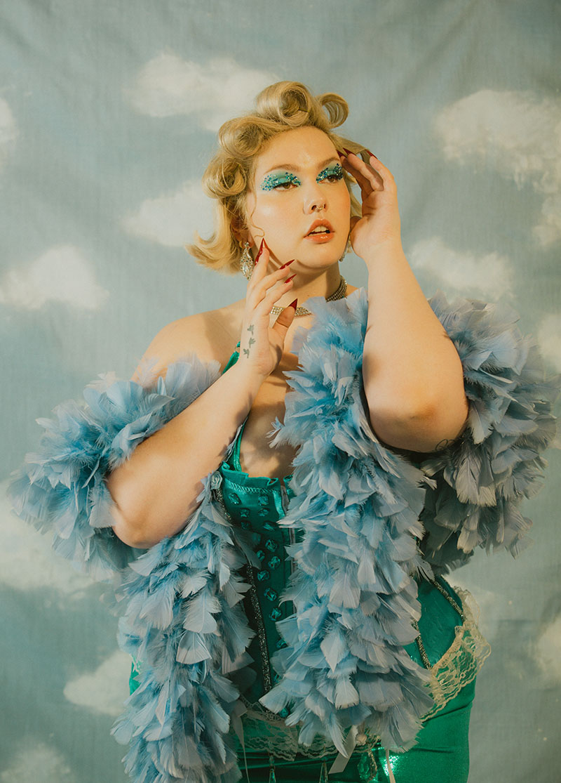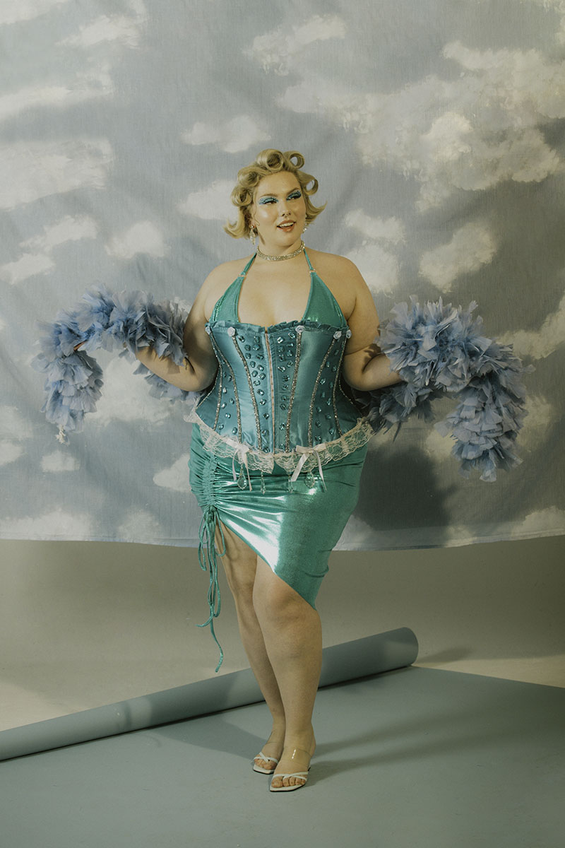Foto Arriba: Lolita Rydell lleva top y falda de Surma Design + Corset Adrián Martínez Maldonado.