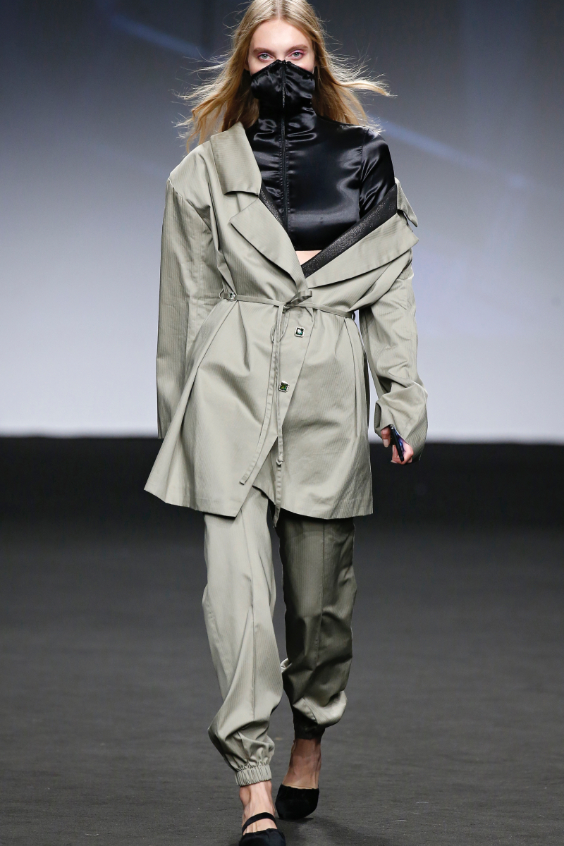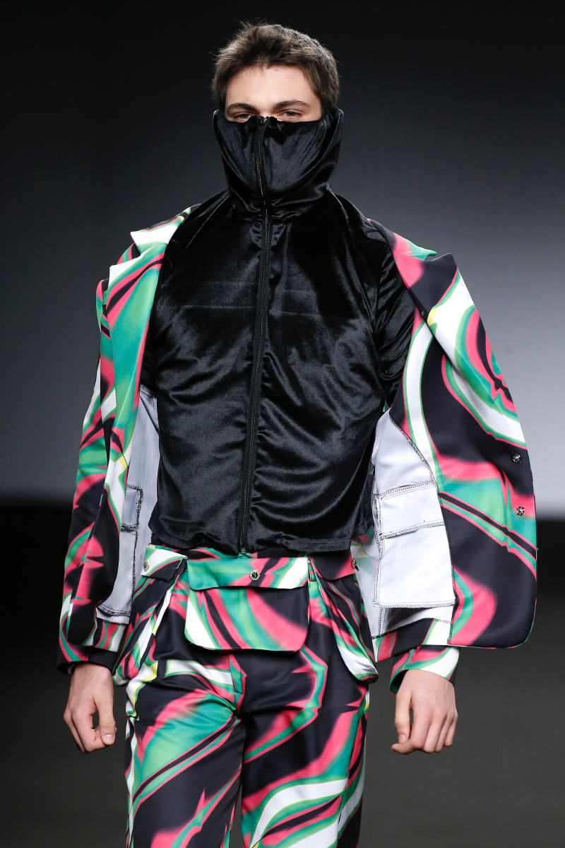 La oscuridad, el miedo a caer y conseguir levantarse son las tres ideas que Cherry Massia cuenta a través de sus diseños. Faldas transparentes, vestidos asimétricos y monos llenos de colores flúor han sido los actores principales. Sin dejar pasar las máscaras negras que nos recuerda al estilo anime que sigue presente en la moda.