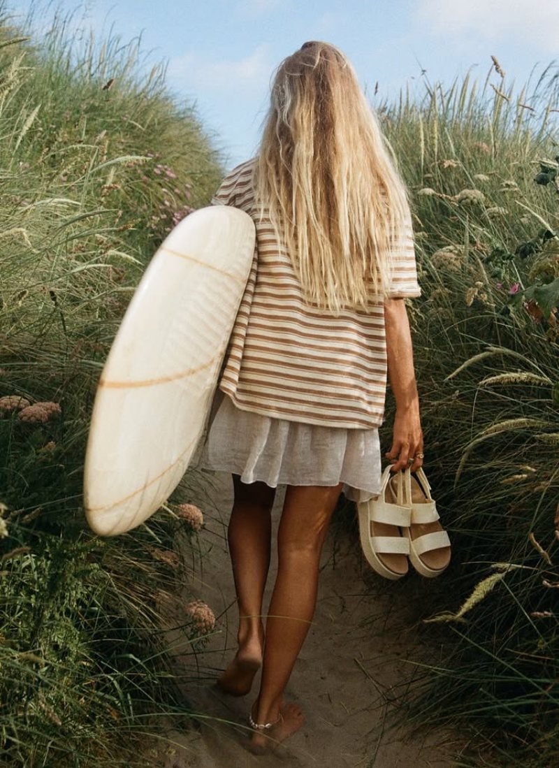 Unas sandalias con plataforma elevada y detalles impermeables, perfectas para llevar con un look de festival o en una excursión a una cala. Nosotros las vamos a combinar con un vestido lencero. ¿Qué te parece?