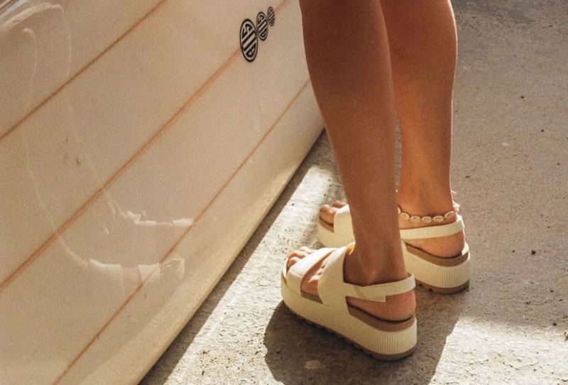 Fotografías oficiales de las sandalias amarillo mantequilla de Reef. Cortesía de @reef